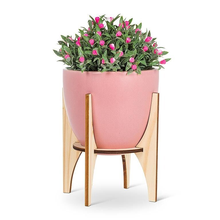 Donnez à votre espace une touche moderne avec ce grand pot avec support en bois. Fabriqué à partir de céramique rose et d’un bois naturel aux tons plus foncés, c’est l’accent parfait pour n’importe quelle pièce. Également disponible dans d'autres tailles et couleurs. Plante non incluse.