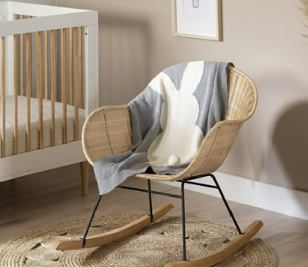 Couverture pour bébé en tricot gris avec un petit lapin crème