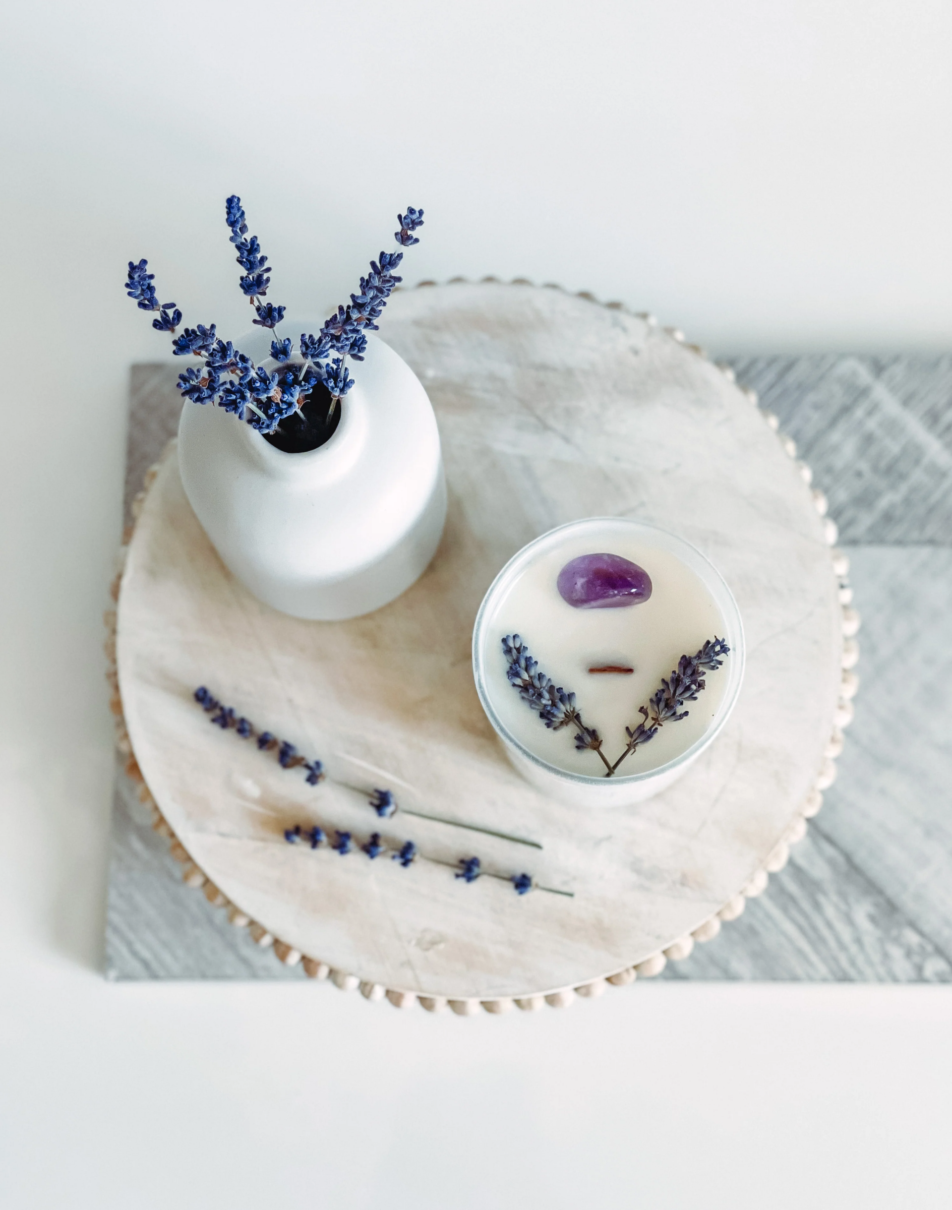 Les chandelles ont une mèche en bois qui crépite ce qui est vraiment relaxant. Nous avons choisi la cire de soya parce qu’elle ne dégage aucune émanation toxique ou fumée noire. Les odeurs sont naturelles, donc légères, sans phtalate et sans paraben. Elles ont toutes des fleurs et un cristal que vous pouvez garder par la suite.